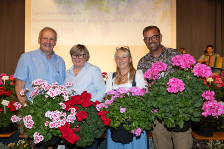 Auch im heurigen Jahr haben sich wieder viele Gemeinden und deren Einwohner/innen an dem dankenswerterweise vom Land Salzburg geförderten Landeswettbewerb „Blumenschmuck und Lebensqualität“ beteiligt. Veranstalter sind die Salzburger Gärtner und Gemüsebauern. Die Teilnehmer/innen schmücken mit viel Liebe, Kreativität und Innovationskraft öffentliche Plätze, Verkehrsinseln, Gärten, Häuser, Balkone und Terrassen mit Blumen und verschönern damit das Ortsbild der gesamten Gemeinde. Im August waren unsere Gärtner-Senioren in Salzburgs Bezirken unterwegs und fotografierten einzigartige Wohlfühlplatzerl. Nicht nur die Üppigkeit in den gemischten Blumenkästen, sondern auch die Vielfalt rundherum, Kräuterspiralen und Gemüsebeete sorgen für eine Fülle an Nahrung und Deckungsmöglichkeiten für Insekten, Bienen und Vögel und sind Kriterien in der Bewertung der Expertenjury. Am Montag, 22. September, wurde die Mühe für diese hervorgezauberte Pracht in einem wunderschönen blumigen Rahmen in der Bachschmiede in Wals belohnt. Die Teilnehmer/innen und Gemeindevertreter/innen wurden zur Siegerehrung eingeladen und die Preisträger/innen durften sich über Blumengutscheine bei den heimischen Gärtnereien freuen. Im Anschluss wurden bei einem gemütlichen Abendessen im Grünauerhof fleißig Erfahrungen und auch so manche grünen Tipps ausgetauscht.